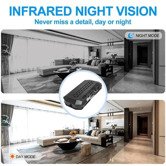 Standby Mode): Over 1 month. Supplied with power cable; extended operating time achievable when plugged in. ^^ Compact and PortableThis mini camera boasts an exceptionally small and lightweight design, measuring just 6.57 1.38 0.8 inches. This wireless hidden mini camera serves perfectly as a home security camera or enables monitoring via a mobile app.