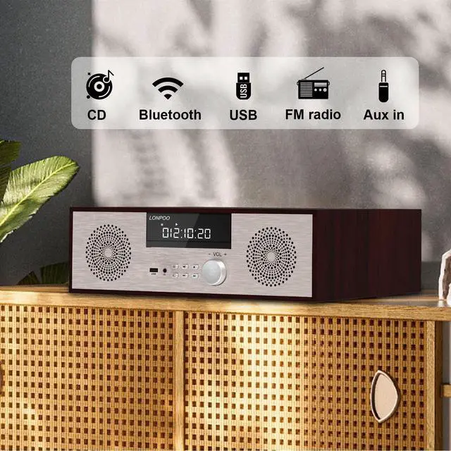 Access your music conveniently: The wireless remote control is designed for you to control the stereo with the tap of a finger. And the hifi system also offers the classic way, it does have button feature for you to adjust the volume, skip the tracks and of course to turn the stereo off. ^^ Copper Cap Smooth & Clear Treble: Copper Cap cuts fluctuations in voice coil inductance in the high frequency range, improves magnetic flux, and achieves smooth high sound without distortion. ^^ Supports a variety of music sources - In addition to FM radio, the LP-816 delivers various music sources. This access to versatile radio stations from your smartphone and Earphone Connections.