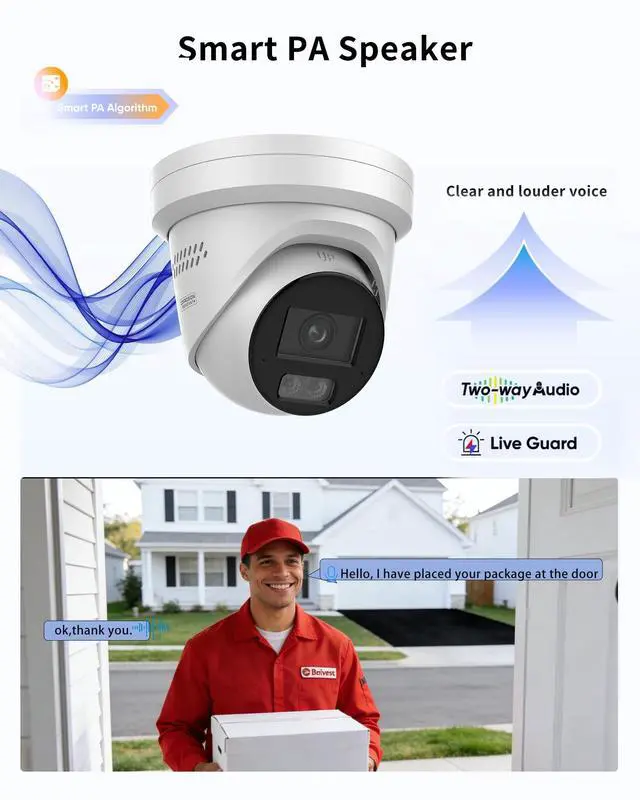 Koiron 4K 8MP DS-2CD2387G3-LIS2UY/SL PoE Turret IP Camera Smart Hybrid Light, Full Color 3.0, 2-Way Talk, Scene-Adaptive WDR, Audible and Visual Alarm, DS-2CD2387G2-LSU/SL Upgrade Model 2.8mm Lens