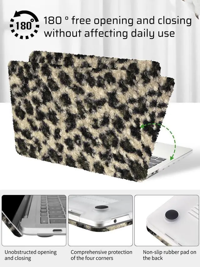 FUNCTION: Premium soft fuzzy plush leopard grain leather plastic case protects your laptop from scratches and wear. The slim design ensures the laptop's light weight and portability. 360 degrees to prevent dust from entering the keyboard. Four rubber feet guarantee the stability and security of the notebook. The bottom of the shell is a network hollow design. Ventilation and heat dissipation effect is better. Powerful anti-fingerprint. This case gives you these options to protect your device ^^