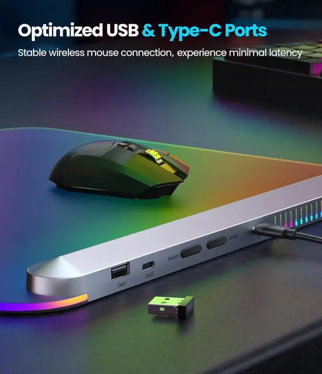 Modes & Colors: With 6 captivating lighting modesstatic color, color cycle, wave, spiral, flame, and beam movementyou can easily adjust the lighting to suit your gaming or work atmosphere. The mouse pad for desk offer several color options in Static mode, making it easy to create a lighting environment that's comfortable for long gaming sessions. ^^ Optimized USB 2.0 & Type-C Ports for