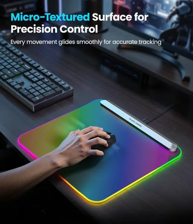 Gamers & RGB Lighting Fans: Looking for a great gift for a gamer or RGB fan? This Blade Hawks RGB gaming mouse pad is a solid choice. With its customizable lighting and sleek design, it enhances any gaming setup, adding a visually appealing touch. Whether they enjoy long gaming sessions or simply want to create a stylish desk space, this computer mouse pad complements both.