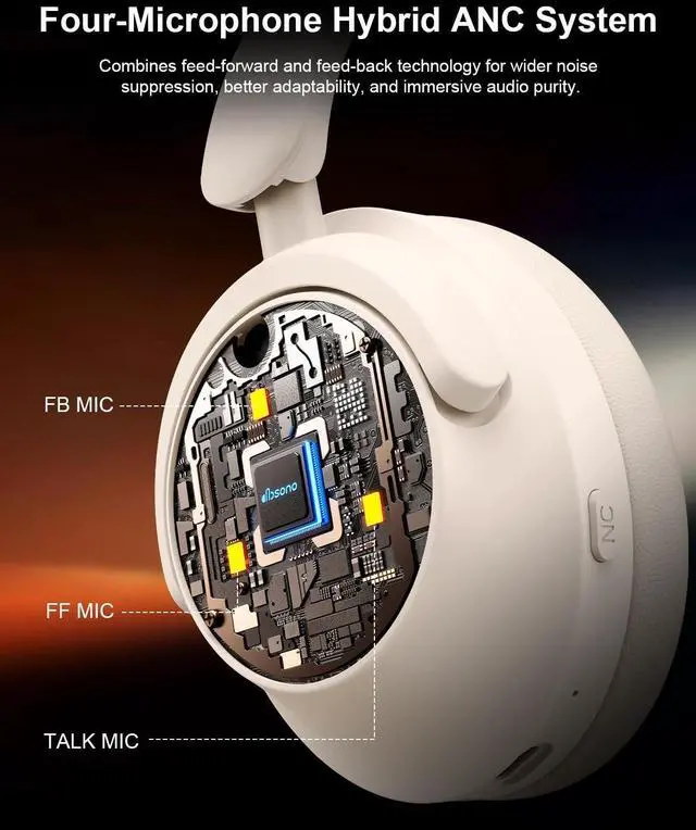 Advanced Hybrid ANC Technology: Experience unparalleled noise cancellation with our hybrid ANC algorithm and 4 built-in ANC microphones, effectively blocking out ambient noise like airplane engines, traffic, and office chatter. Enhanced ENC (Environmental Noise Cancellation) ensures crystal-clear calls even in noisy environments, so you stay connected without distractions ^^ Music Enjoy with