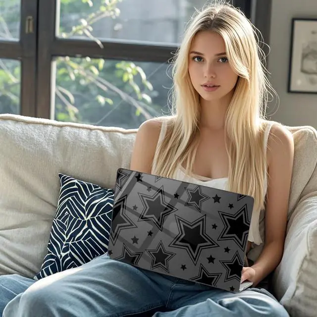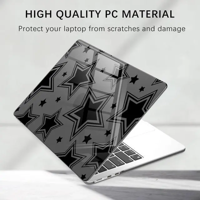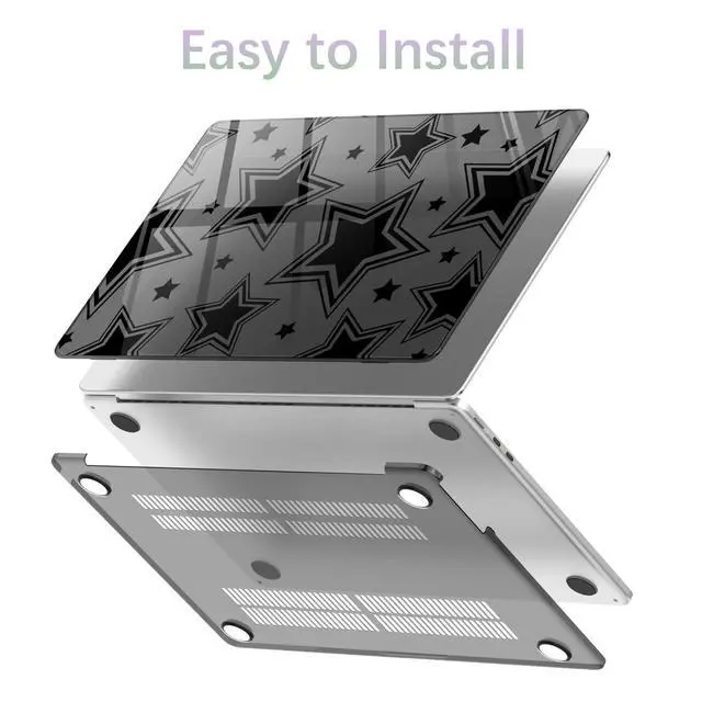 Exquisite Star Design: The black transparent laptop shell perfectly matches laptop in various colors, and the cute y2k black star pattern design is fashionable and simple ^^ Easy Installation and