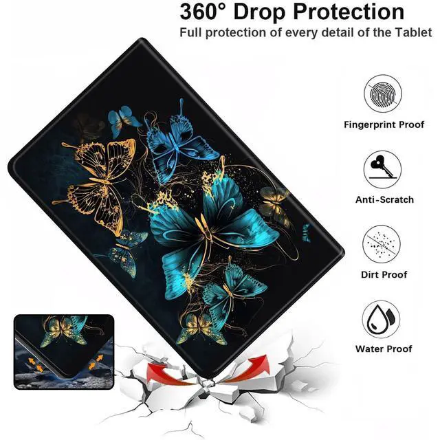 Easy access to all features and controls. -- Built in PU leather, Inner shock absorbing TPU & front and back cover protect your tablet from scratches, dirt and grime etc. --Allows setting multiple horizontal standing angles for viewing, No angle restrictions. --Lightweight table case fully protects your device without adding extra bulky.