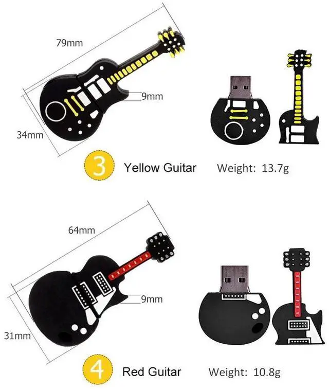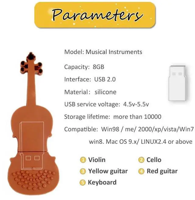 Cute USB Drive: pack of 5 pieces novelty 8GB musical instruments flash drive, featuring strong and soft silicone protective cap, shockproof and stylish ^^