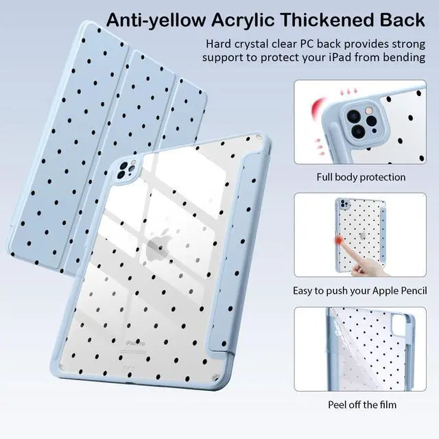 Please Note: The pen holder of this model is located on the left side of the iPad ^^ Well made with PU exterior, microfiber lining and soft silicone frame and clear acrylic back cover, offers full body protection from drops and scratches ^^ Built-in Apple Pencil holder, grab your apple pencil effortlessly whenever you want, keep the apple pencil as safe as your iPad all the time ^^ Cover has flip capability to transform the case into a viewing stand and typing stand. Available in a variety of bright colors and unique pattern ^^ Built-in magnetic strip provides auto sleep / wake function. Precise cutout and design allow easy access to all ports, sensors, speakers, cameras