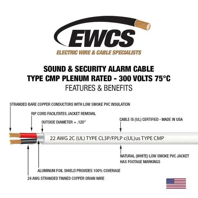 100% Overall Aluminum Mylar Shield with Drain Wire ^^ White Low Smoke PVC Jacket - Fully Color Coded Conductors ^^ Made In USA ^^ Nominal Diamater. 128" ^^ Rip Cord to Facilitate Easy Stripping