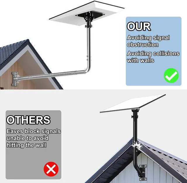 The Starlink Performance Gen 3 Wall Mount has an adjustable length from 30 to 42 inches, fitting both narrow and wide spaces for flexible installation. It provides 160 tilt adjustment to help with signal reception by adjusting based on environment and signal direction, works for multi-scenario use including wall and roof installations (securing on house exteriors, RV sides, and roofs to expand application range), is designed for Starlink Performance (Gen 3) Dish for a proper fit and consistent performance, and allows for easy setup with simple installation without complex tools and a sturdy design that resists external force for stable use.