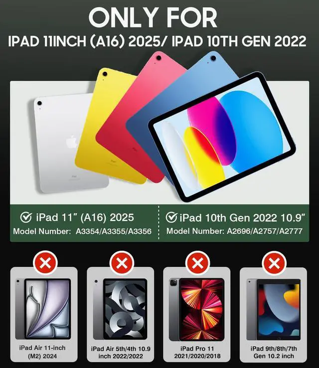 Compatibility: Only designed for new iPad 11-inch (A16) 2025 (iPad 11th generation) & iPad 10th generation 10.9 inch 2022. Model Number: A3354/A3355/A3356/A2696/A2757/A2777. Not fits for any other devices.