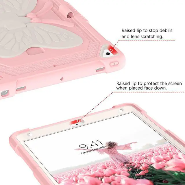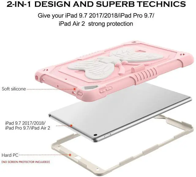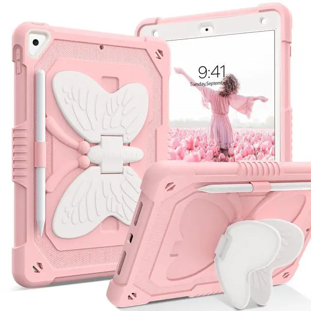 Pro 9.7 inch 2016 (model: A1673 A1674 A1675) Not fit other. Please check your tablet model before purchasing. ^^ Pencil Holder FeatureBuilt-in Apple Pencil holder, can hold your pencil in place tightly (Pencil is Not included). ^^ Butterfly Wings KickstandSturdy built-in butterfly kickstand, when you want to typing, gaming or watching video not have to hold the iPad at the same time ^^ Exquisite Tactile ButtonPrecise cutouts ensures all ports, on the Pad touch ID function, sensors, speakers and cameras. ^^ Durable MaterialThree Layer design combines hybrid shockproof material and silicone outer layer with a hard PC cover to achieve the strongest fall protection for iPad.