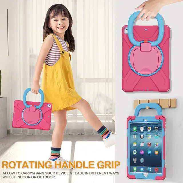 Multi-Function Features: 360rotating / 180folding Grip can be used as a handle, easy to hang your iPad in kitchen, washroom, bedroom; Kickstand is stable enough to stand on different surfaces for children to view. And with a adjustable shoulder strap, it is convenient for you to carry and hang everywhere ^^