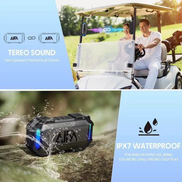 Featuring TWS Mode: Connect two speakers together for stereo sound that improves sound quality and expands the width of the soundstage, delivering a fuller, more dynamic sound for an immersive listening experience. Perfect for golf cart speakers or outdoor adventures. ^^ IPX7