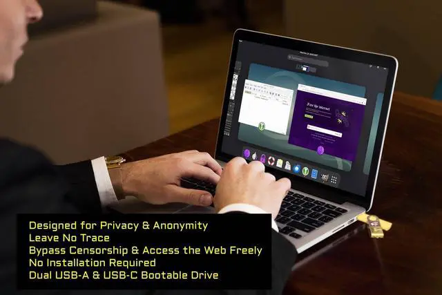 Dual USB-A & USB-C Bootable Drive works with almost any PC or laptop (UEFI & Legacy BIOS). Boot Tails directly from the USB for secure, private sessions anywhere. ^^ Persistent Encrypted Storage Included securely save documents, browser settings, and encryption keys in a protected area of the USB. Data is accessible only with your password. ^^ Maximum Privacy & Anonymity all internet traffic is routed through Tor, preventing tracking, fingerprinting, and censorship while keeping communications private. ^^ Run Live or Use Persistently choose a temporary session that leaves no trace, or enable persistence to keep important files and configurations safely between reboots.
