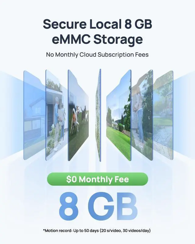 Enjoy lifetime power from solar energy, eliminating the need for frequent charging ^^ 8GB eMMC StorageUnlock effortless storage with Lucio's 8GB eMMC, capable of holding 50 days of playback. Eliminating the need for a hub or monthly feesyour memories are secure and accessible, saving you data and money. Please note that it only supports 2.4GH z WiFi, not 5G wifi, like most cameras on the market!!! ^^ Multi-Object DetectionLucio's AI-powered multi-object detection identifies humans, vehicles, pets, and packages with precision. Receive clear, timely notifications directly to your deviceall without subscriptions or extra fees.