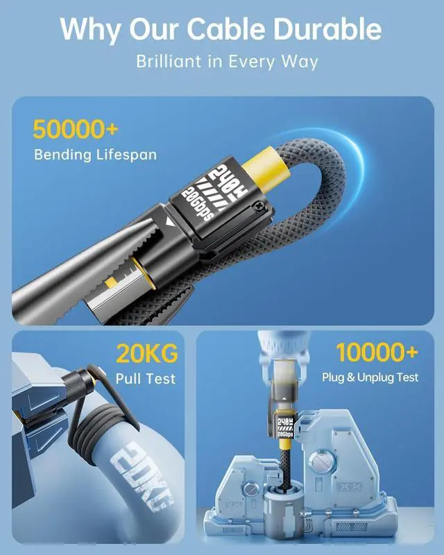 ^^ [20Gbps Ultra-High Data Transfer] With blazing-fast 20Gbps transfer speeds-up to 20X faster than standard USB-C cables. Ideal for 4K/8K video files, RAW photos, backup drives, and large project data. Transfer 1GB files in just seconds, perfect for creators and professionals. ^^ [Ultra-Durable Build] Reinforced connector joints, premium braided nylon, and metal housings ensure exceptional durability. Successfully tested to withstand 30, 000+ bends, making it ideal for daily use, travel, office setups, and frequent plug-and-unplug scenarios. ^^ [Compatile with Most Phone Case] Our intentional 2mm connector extension design is to solve the compatibility issue with cell phone cases.