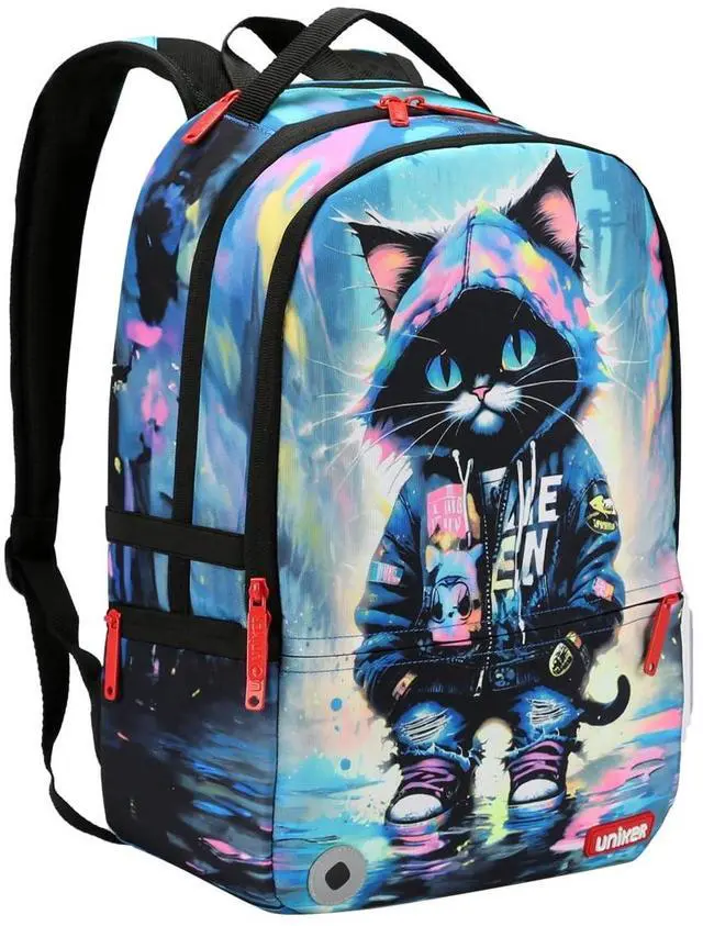 GREAT FOR DAILY USE-Measuring 17.5 *12*6 inches, weight 0.80 kg. Adjustable soft strap with buckles. Two side sealed zippers pockets. The stationery will be collected in front pocket. Multi pockets backpack makes your item organized and easier to find. ^^ CONVENIENT DESIGN-It also has a hidden pocket right behind to handle strape on the top of backpack which is nice for carrying wallet, phone and other valuables. ^^ INDEPENDENT LAPTOP INTERLAYER-Cool computer backpack has three main zippered compartments, can keep your 15.6 inch, 14 inch laptop and other stuffs in the separated space.