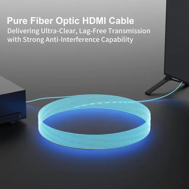 HDMI Cable: Composed of full optical fibers, it provides enhanced anti-interference and compatibility. The full fiber optic HDMI cable can effectively prevent electromagnetic interference that could impact device performance. The special stainless steel armored structure of the cable ensures bend flexibility, tensile strength, compression resistance, and tangle-free for durability and reliable performance ^^