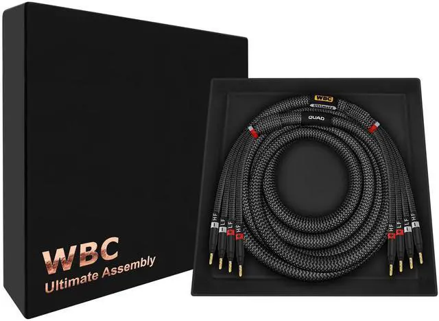 The high-end packaging, makes these a great gift for any Audiophile or Music Lover who will appreciate handcrafted, high quality audio cabling. The braided Tweed cloth jacket and embroidered labeling will compliment your high-end gear quite tastefully; this is truly The Ultimate speaker cable. ^^ At WBC we only use the highest-grade connectors for these audiophile cable assemblies. Eminence 3 micron, 24K Gold plated, audiophile-grade, 4mm (standard diameter) banana plugs with a fully insulated body to prevent accidental shorting, provide superior abrasion & corrosion resistance and unrivalled performance. The banana plugs are specially reinforced to support heavy gauge cables (special shaft inside).