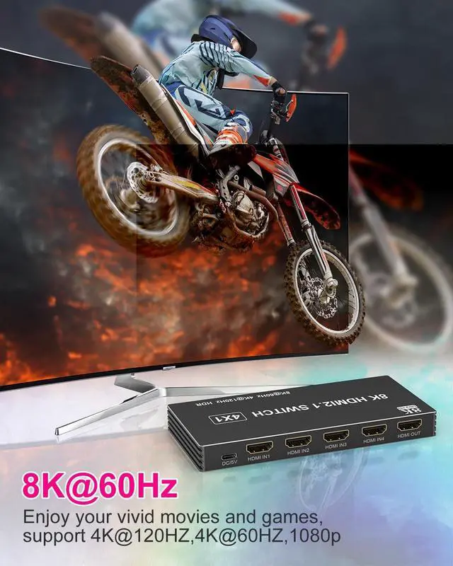 Bandwidth: Powered by the latest HDMI 2.1 standard, this switch ensures ultra-fast data transfer up to 48Gbps. Say goodbye to lag, screen tearing, and signal lossexperience stutter-free gameplay and flawless video playback even on demanding devices ^^