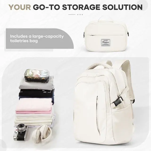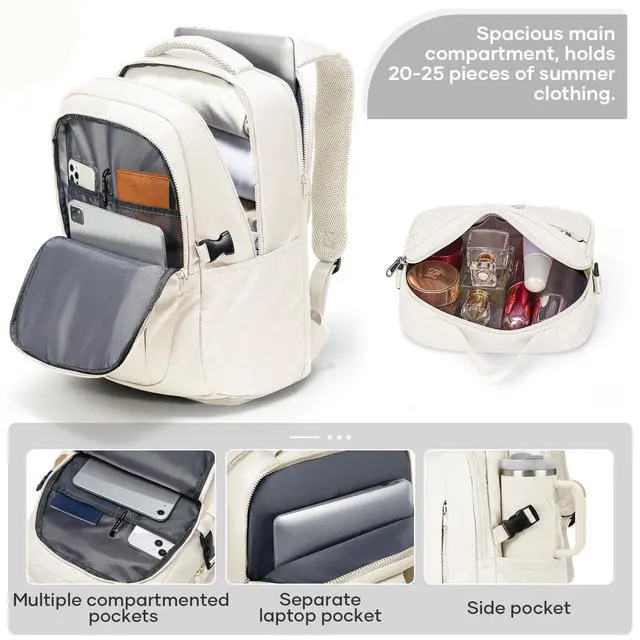 suwasp Travel Backpack for Women Airline Approved Carry On, Large Laptop Backpack for Men, Flight Approved Luggage Backpack (Beige-with Toiletry Bag)