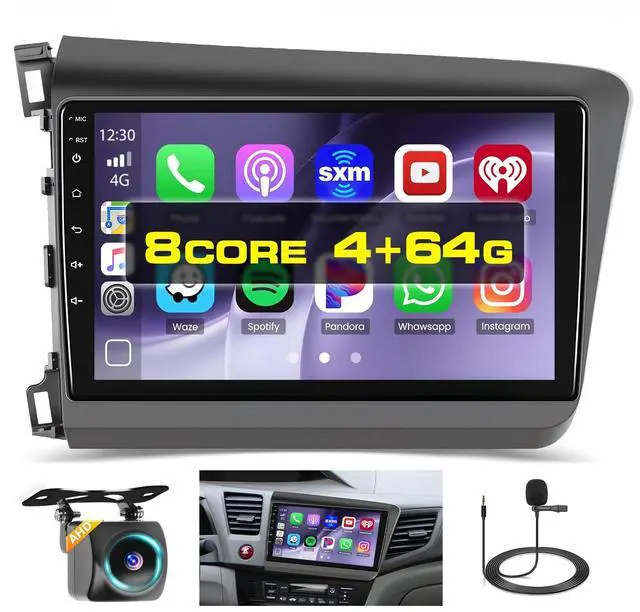 8-Core 4GB+64GB Upgraded Android Car StereoThis 9-inch IPS android car touchscreen for honda civic 2012 2013 2014 2015 comes with Android operating system, 8-core CPU, and 4GB RAM+64GB ROM. Before purshasing, please check your car models/years/shape of center console. If you have any question, please tell us via ^^ Wireless/Wired Carplay Android Auto & Mirror LinkThis car radio for honda civic supports wireless/wired Carplay/Android Auto, allowing you to use your phone to make calls, use maps and listen to music while driving. Mirror Link support also lets you access maps, videos and more directly from your phone on the display ^^ WiFi, GPS Navigation, Split ScreenInefala carplay radio for honda civic allows you to use navigation software like Waze and offline maps.