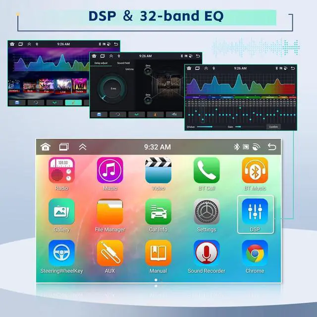 You can also use voice guidance and real-time traffic information. Split-screen display allows you to listen to music while navigating, etc ^^ 32EQ DSP, Bluetooth 5.0, FM/RDS RadioThis android car stereo for honda civic has a built-in DPS and is equipped with 32EQ. Bluetooth 5.0 allow you to take calls. The built-in FM/RDS offers convenience and versatility with the ability to store preferred stations (30 stations can be preset) ^^ 59UI, SWC, Backup CameraThe android car dash kit for honda civic has 59 UI themes to choose from and makes it easy to move frequently used apps to the home screen for quick access, as well as supporting mobile phone connectivity and swc.