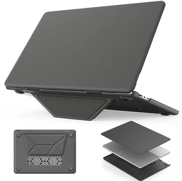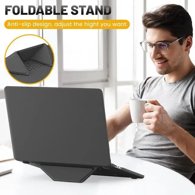 ^^ Foldable Kickstand: Designed with foldable stand, which gives a height adjustment to prop the laptop up, offering more friendly typing and viewing angles. The vents on the bottom can also help the heat dissipation, comfortable for daily use, the built-in stand can be folded up when not in use. ^^ Easy to Install and