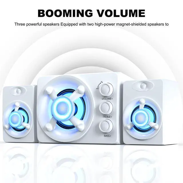 D-208 Computer Speakers with Subwoofer, 2.1 Hi-Fi PC Speakers System with RGB Lighting , Enhanced Bass, Plug and Play, USB/USB-C Powered and 3.5mm Aux in for Desktop, Monitor, Laptop, Tablet (White)