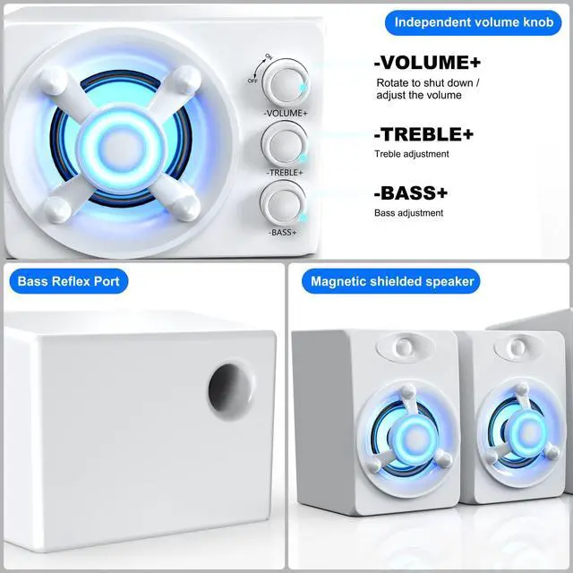 Easy to Control: Power the PC speakers on/off and adjust volume smoothly with a single intuitive knob. They also feature dedicated treble and bass controls, letting you fine-tune the sound to your preference for optimal audio performance.