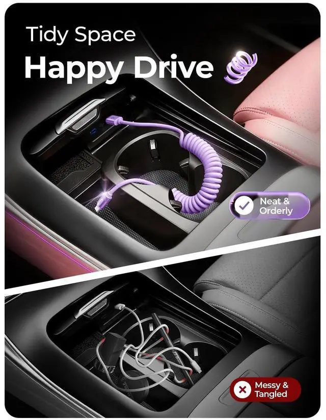 Neat & Safe Driving CompanionAre you tired of the messy cables in your car, and want to make your center console look neater? Carplay cable unique telescopic spring cable design avoids the drawbacks of ordinary straight cables, such as getting stuck on the gear lever or hanging near the accelerator/brake pedal that affect driving operations. It delivers a more focused and safe driving experience