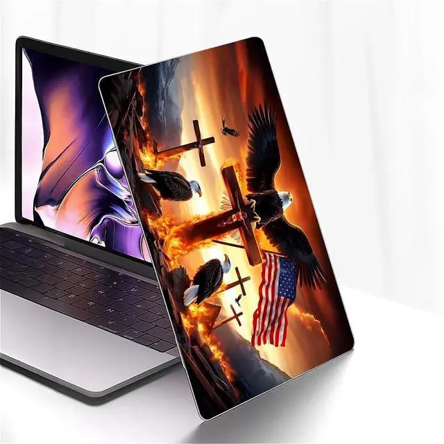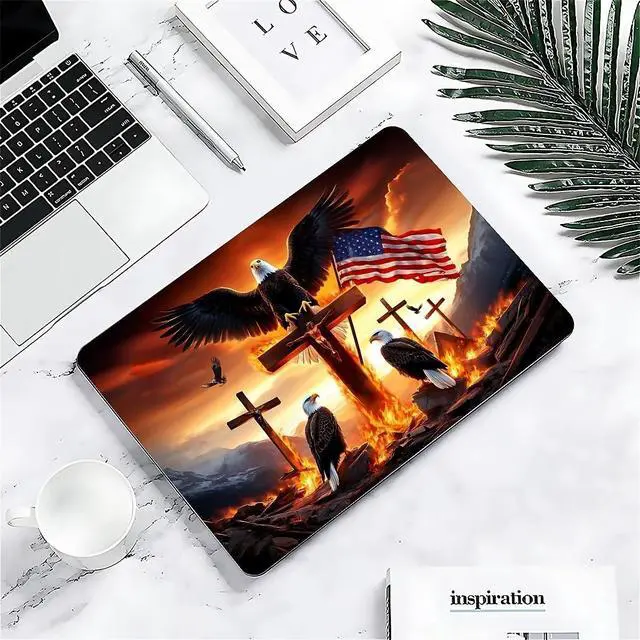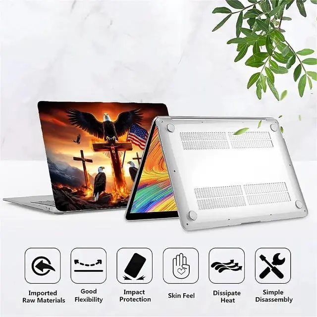 Punmada for MacBook Air 13 Inch Release 2018/2020 Model A1932/A2179/A2337 Clear Computer Case,Novelty Premium Pattern Hardshell Laptop Case Eagle American Flag Cross Jesus