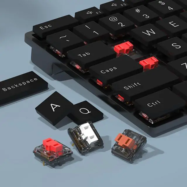 Clicky: Suitable for fast tactile typing & speed-typing, Size: 15x15x8mm ^^ Plate mounted 5-pin design switches, Mechanical life up to 50 million times ^^ Low Profile Switches-Shorter stroke, Faster response actuation