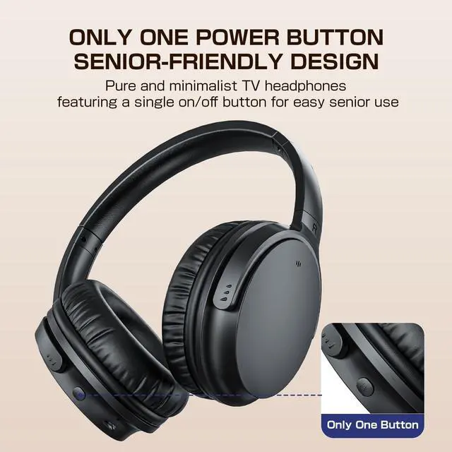 One-Button Simplicity TV Headphones & Remote Control VolumeJFH-280TV Wireless TV Headphones are designed for ultimate simplicity, featuring only one power button and no volume controls on the headsetmaking them ideal for seniors and users who prefer straightforward technology. Just turn them on for automatic connection to your TV. There are no confusing controls on the earcupssimply adjust the volume directly with your existing TV remote. This seamless setup eliminates the hassle of handling multiple devices, offering a truly frustration-free experience. Perfect for older adults and anyone seeking easy, accessible sound control. ^^ Pure TV Headphones Plug and Play in SecondsDesigned exclusively for television use.