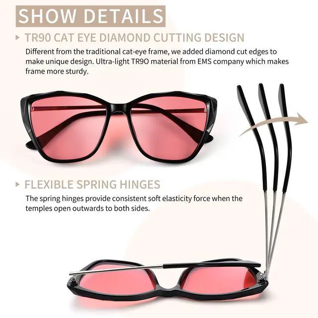 ^^ PRECISION WAVELENGTH TARGETING: FL-60 lenses specifically block 480-520nm light wavelengths, the most problematic range for eye strain and neurological sensitivity, while also partially filtering 390-450nm blue light for broader protection. ^^ CAT EYE TR90 FRAME & SPRING HINGES: Constructed from the durable TR90 nylon material, this ultra-lightweight and flexible frame are comfortable for long-term wear. The cat eye frame design not only adds a touch of style to your overall look but also ensures a perfect fit for all face shapes. ^^ PRODUCT SIZE