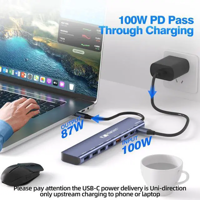 Please pay attention: the USB-C Power delivery is Uni-direction, only upstream charging to phone or laptop. Power adapter is not included ^^ Super Safety & DurableThis newest USB 3.2 gen 2 hub adopts premium Aluminum housing to realize an excellent heat dissipation performance and durable. It has buit in short circuit protection, over voltage protection and over temperature protection. Built-in current protection setting to extend the life of the hub. ^^ Wide CompatibilityThe USB C 3.2 Splitter is compatible with almost USB-C devices such as MacBook Pro, MacBook Air, iPad, iMac, Thinkpad, Surface Laptop, Dell XPS, Galaxy S23/S21/S20, Iphone 16/15, and more Laptops/smartphones etc.