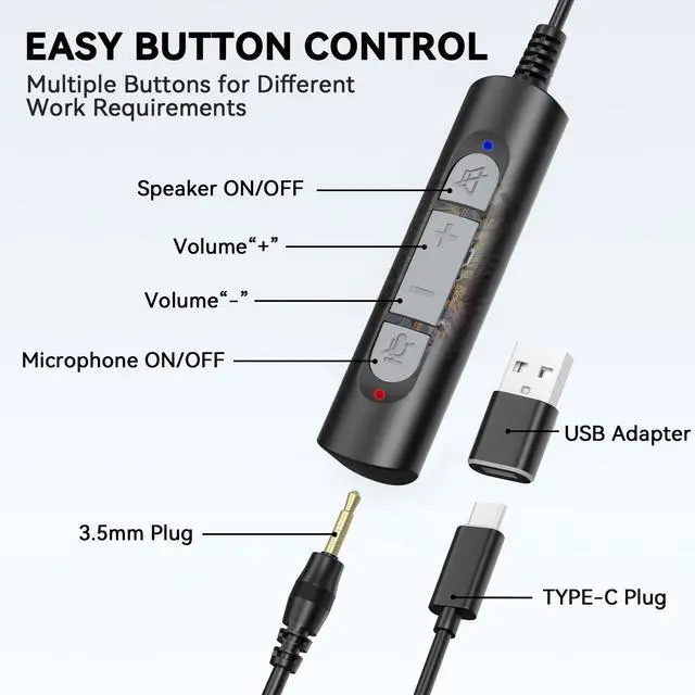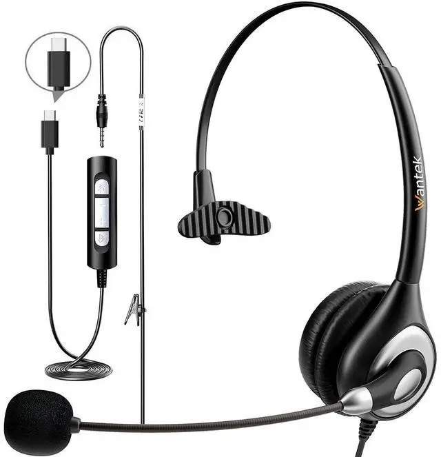 & 40mm audio driver: Corded phone headset with built-in audio sound card, Wantek sound lab tested thousands of times for your daily conversation/music/movie/gaming, bringing you extra clear and bass for pleasant experience ^^ TYPE-C/ 3.5 mm Connection The headphone is designed for multiple use, 3.5 mm audio cable with TYPE-C In-line audio volume control (cord length 5+4 feet)with mic mute &indicators /speaker mute. Compatible with PC/Tablet/Mac/iOS/laptop /Android phone and other devices. " ^^ global warranty &multi-purpose24 months warranty by Wantek. Great ideal for online courses, Skype chat, call center, Webinars Presentations, Office, Business, Rosetta Stone, Dragon Speaking, Conference Calls and more