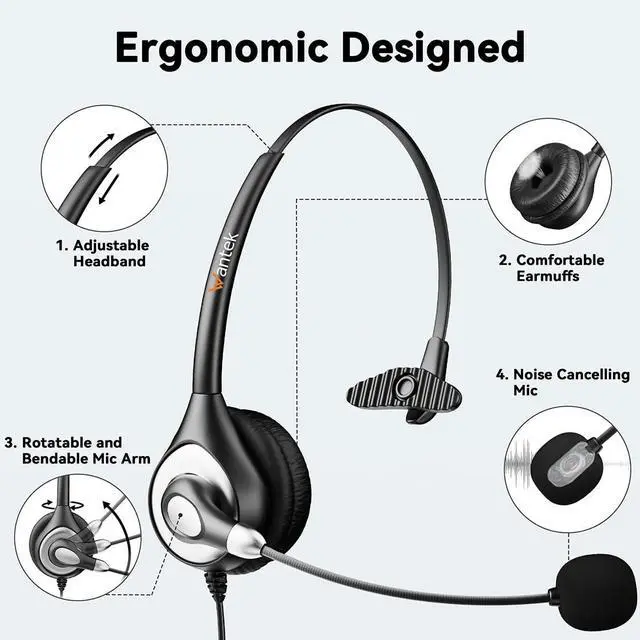 Outstanding Noise cancelling Microphone The headphones with unidirectional boom 270microphone that only picks up your voice and block out unwanted background noises. Also, you can wear it on the left or right ear as you like ^^ All-Day Comfort for All Head Shape Wantek always designed for all-day comfort using, there will be no restraint pressure, with the adjustable headbend fit adult and kids easily. The soft protein memory foam earpads is made of high-level breathable materialsROHS certified materials prevent your ears from heat and sweat ^^ Enhanced sound performance