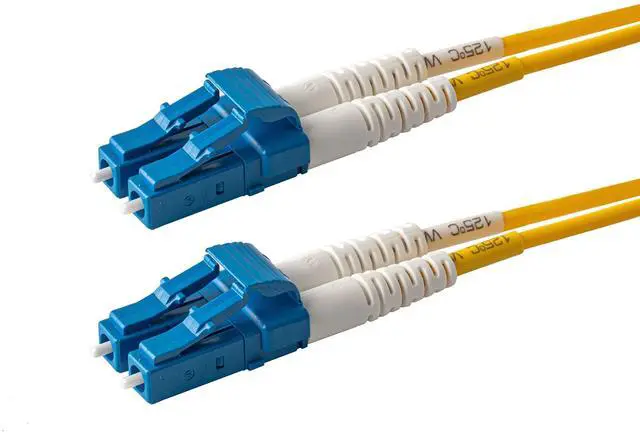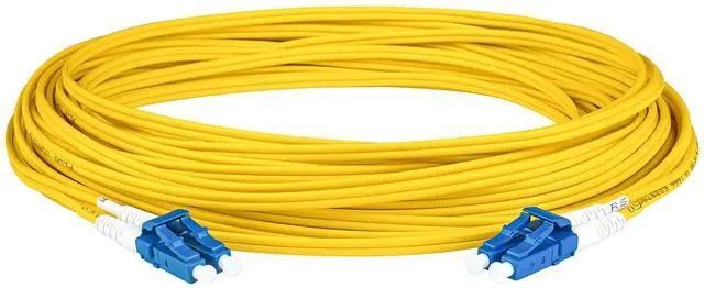 SpeedyFiberTX LC to LC Fiber Patch Cable, Corning SMF-28 Singlemode 9/125um Ultra Optical Fiber, Duplex, Yellow Riser OFNR Cable JacketSpecifications Insertion Loss 0.2 (dB) Return Loss 50 (dB) Attenuation at 1310nm 0.32 (dB/km) ^^ at 1550nm 0.18 (dB/km) Operating Wavelength 1285nm - 1625nm Operating Temperature -20C to +70C Ferrule Material Ceramic Compliance ITU, UL, CE, IEC, TIA, RoHSFeatures and Benefits Slim 2.0 mm zipcord cable and durable LC duplex connectors with short boots for easy deployment Easy to identify fiber channels with color-coded heat shrink tubing ^^ Yellow to Yellow, White to White Light weight and flexible Riser OFNR rated PVC zipcord cable jacket Every LC connector termination is tested to ensure the quality in network performance