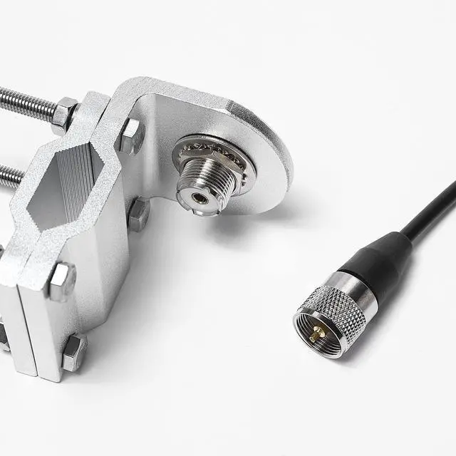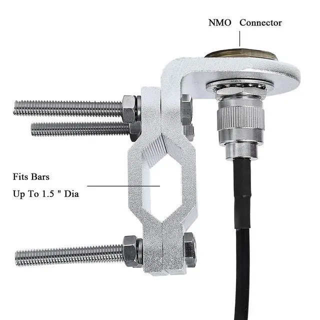Mounting bracket fits roll bar or mirror up to 2diameter. The mounting bracket is used in roll bar and mirror antenna. Heavy duty mount which is designed to clamp on roll bar, cargo rack, tractor and semi mirror, can provide a sturdy location for antenna with NMO connector.; RG-58 coax cable is made of solid copper, tinned copper braid, aluminum foil, PE and PVC. PL-259 connectors are made of pure brass and nickel-plated which have better performance in resisting oxidation and corrosion.; RG-58 cable with PL-259 connector is suitable for devices with SO-239 such as two way radios, swr meter, radio transceiver, cb radio antenna, ham radio, antenna analyzer,, marine antenna.