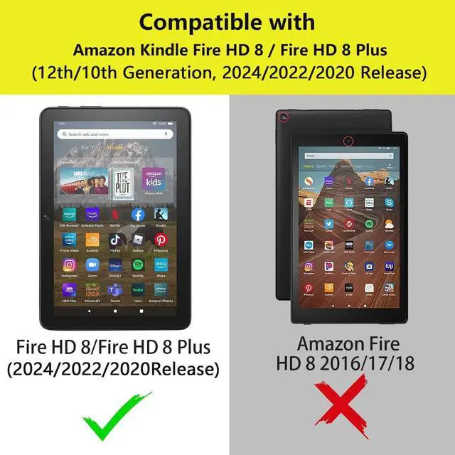Compatibility: - Specifically designed for All-New Kindle Fire HD 8 / Fire HD 8 Plus Tablet (8 inch, 12th/10th Generation, 2024/2022/2020 Release). - Not compatible with Kindle Fire HD 8 Tablet ( 8th/7th/6th Generation, 2018/2017/2016 Release), Please Check Your Device Model Before Purchase.