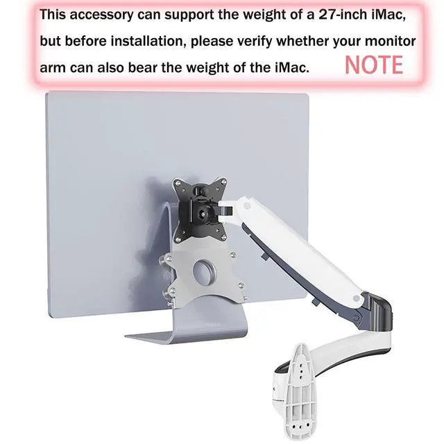 Important Notes: For optimal floating performance and safety, please confirm that your VESA monitor arm or wall mounts weight capacity is equal to or greater than your iMacs weight before installation. Turn off your iMac and disconnect all cables before mounting. We recommend two-person installation to avoid scratching the body. This product is an adapter plate onlyVESA monitor arm is NOT included. Order now and easily upgrade your iMac experiencecreate a modern, flexible floating workspace for both work and play!