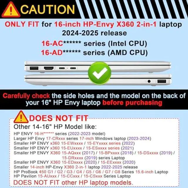 Designed for HP Envy x360 16" Tailored exclusively for the 16-inch HP Envy x360 2-in-1 Laptop 2024 2025 release, 16-ACxxxx / 16-ADxxxx series 2-in-1 Windows Laptop PC.