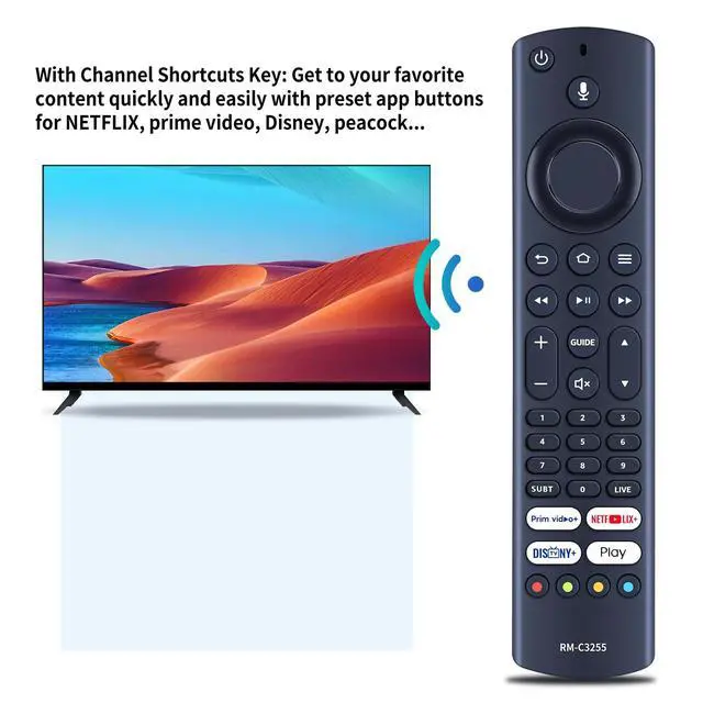 Channel Shortcut Keys: get to your favorite content quickly and easily with preset app buttons for Netflix, Prime Video, Disney+, and Play.