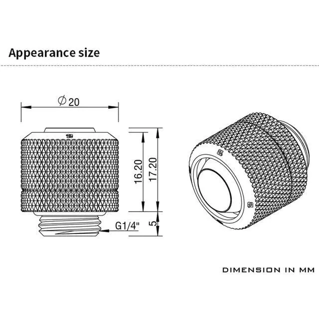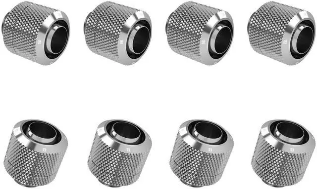 Wide Compatibility - Fitting features a standard G1/4" thread interface, making it compatible with most water cooling products on the market. Supports 3/8" ID, 1/2" OD (10mm/13mm ID/OD) soft tube for easy integration into diverse cooling setups. ^^ Premium Brass Construction - Made of high-quality brass with a polished silver chrome finish, offering exceptional rust resistance, durability, and a refined aesthetic that enhances any system. ^^ Leak-Proof Reliability - Equipped with an embedded O-ring and ultra-tight compression design, providing a secure and leak-free connection while preventing tube slippage under pressure.