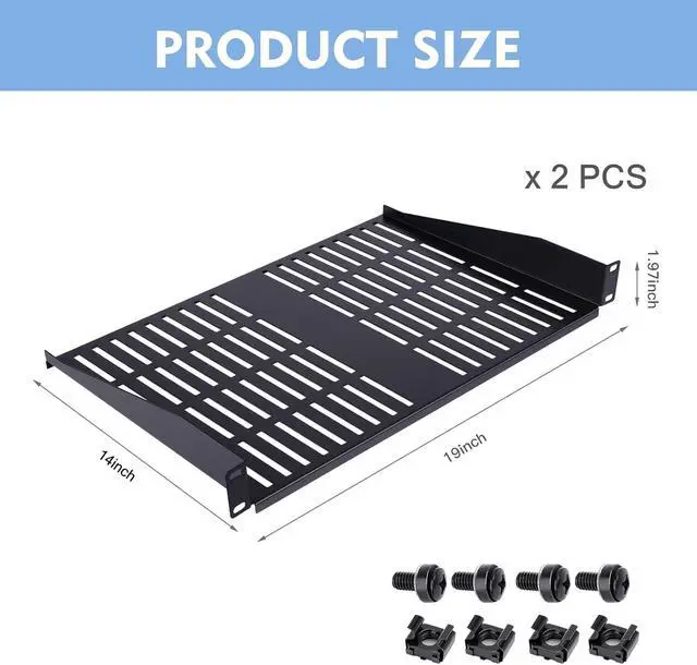 Universality: The 14"Depth server rack shelf fits all 19-inch standard racks and cabinets, used to accommodate IT, data network, and stereo equipment.