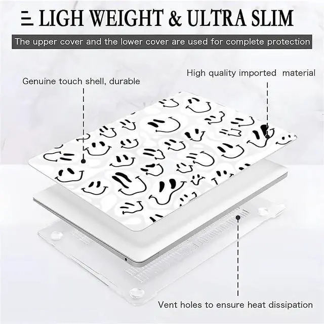 Additionally, its design takes into account heat dissipation, preventing overheating and extending the lifespan of your device. ^^ Stylish and playful designThis laptop case features a carefully designed unique pattern that not only enhances the stylishness of your MacBook but also adds a touch of playfulness and fun. Whether in a professional setting or during leisure time, this case will make your device stand out, showcasing your personality and taste. It's both practical and creative, bringing more joy to your daily life! ^^ Convenient And Practical AccessoriesThis laptop case features a carefully designed unique pattern that not only enhances the stylishness of your MacBook but also adds a touch of playfulness and fun.