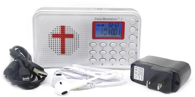 This talking bible always remembers where you were at when it is turned back on. ^^ This electronic bible includes charger and pair of earphones. Rechargeable battery of this talking bible enables 20 hours of continuous play after each charge. Both an earphone and a built-in speaker enable convenient private listening, family listening, and small group listening anywhere you go. ^^ This audio bible player is deal for seniors, and anyone who wants to make good use of your time to focus on Gods words all day long when you commute, cook, exercise, do house work, etc.