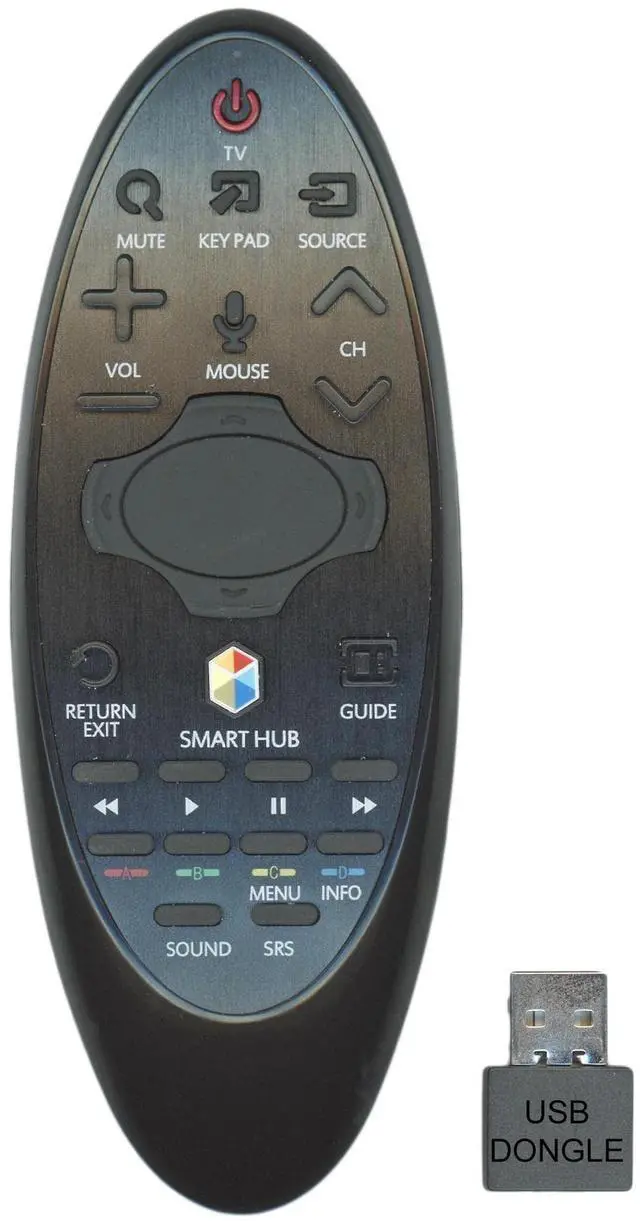 ^^ Simple Setup: Getting started with the BN5901185F-AG remote is quick and easy. Simply plug the included USB receiver into one of your TV's USB port connections. An image will appear on the screen, indicating successful connection. Next, press and hold both the "RETURN" and "GUIDE" keys simultaneously for more than 3 seconds, and the LED light on the remote will flash.