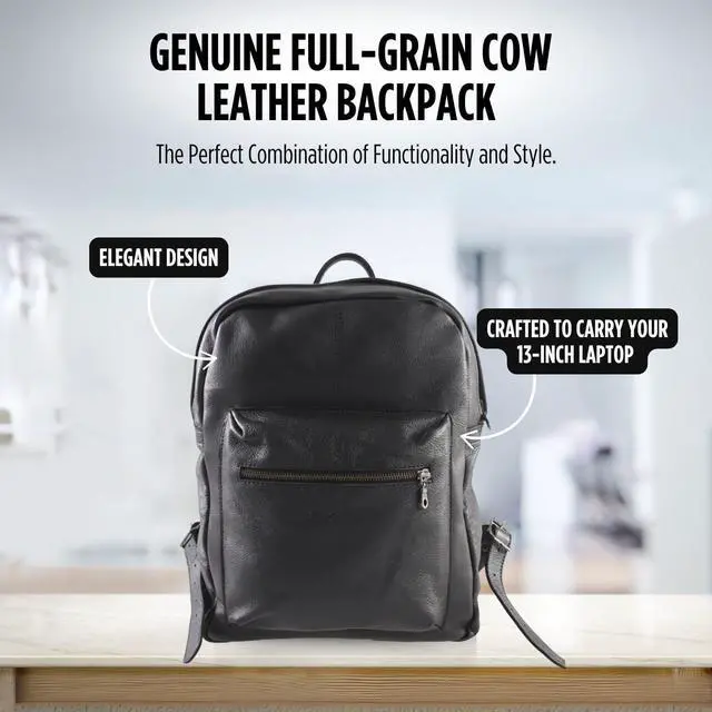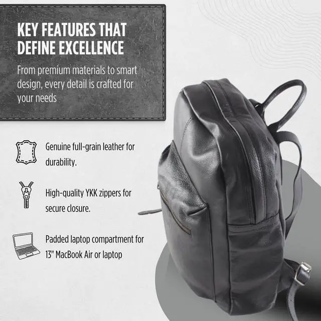 Dedicated Laptop Compartment: Designed to fit a 13" MacBook Air or laptop, this leather laptop backpack features a high-density foam compartment for optimal protection, ensuring your valuable electronics stay safe during your travels ^^ Leather Backpack for Men and Women with Ample